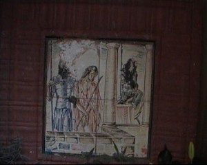 Como se puede ver en la primera estación Jesús es detenido por un romano y expuesto en una especie de balcón, junto a dos columnas en las que parece está sentado un juez o funcionario judicial muy malo, que me recuerda a algunos de Ripoll, que durante años me han echo vivir un verdadero calvario.