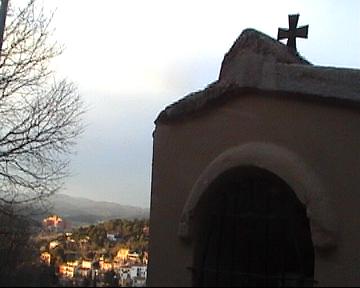 Siguiendo al sol paso por Torre Gironella y llegó pues al Calvario, en donde saco unas fotos en la primera estación; que es la primera de doce casetas que forman en calvario y en cuya cima dicen habitaba el titán Gerión, ese al que dió muerte el mismísimo Osiris.