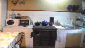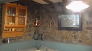 Mi casa es muy antigua, la cocina está bajo tierra y la Virgen está como en una cueva. Antiguamente la casa pudo haber sido una especie de ermita donde habitaron los anakoretas . La cocina es muy vieja, del 1.830 y pico, que fue la última vez que se arregló la casa y yo la voy arreglando poco a poco, pero tengo fuegos de gas butano también, que uso si hay prisa ya que normalmente gasto leña que es lo que hay en los bosques.