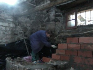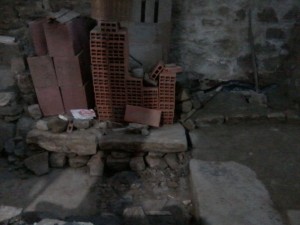 La primera planta de mi casa está bajo tierra, es como una cueva y hace un frio que pela y por esto estoy construyendo una chimenea tratando de aprovechar la pendiente del último tramo de la escalera que sube al pajar.
